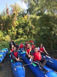 Першокурсники поступово адаптуються до свого нового соціального статусу. Студентське життя – це звичайно, в першу чергу, напруженні будні навчання. Але потрібно знаходити час і для змістовного відпочинку. Другий тиждень навчання наші першокурсники завершили на катамаранах. Разом з куратором вони взяли участь у майстер-класі з рафтингу на катамаранах у Смотрицькому каньйоні. Було продемонстровано вміння діяти злагоджено однією командою на воді і на березі. |