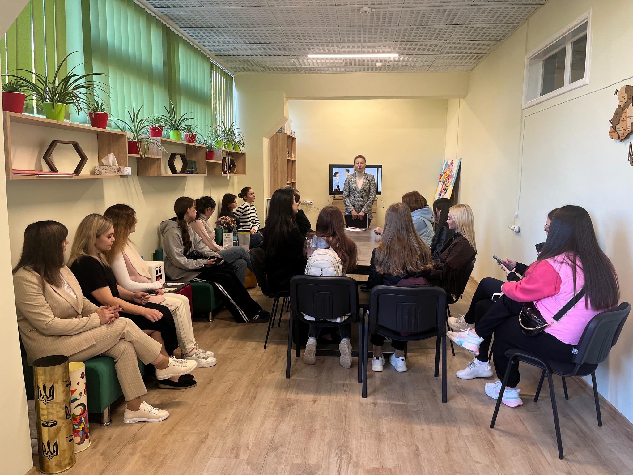 26 вересня 2025 р. відбулася ознайомча екскурсія із Центром психосоціальної підтримки «Зелений ґудзик», який надає психологічну допомогу для ветеранів та членів їх сімей у Камʼянець-Подільській територіальній громаді. Навчальний екскурс провела голова правління Центру психосоціальної підтримки «Зелений ґудзик» – Світлана ГУМІНСЬКА, яка свій виступ розпочала зі слів: «Ми віримо, що здорова нація починається з турботи про