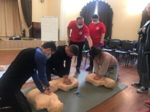 Інструктори з першої дпомоги: Сергій Юрков, Світлана Гаймер, Олеся Ксьоншкевич та Антоніна Возович навчали слухачів, як правильно робити непрямий масаж серця, штучне дихання, допомагати у разі потрапляння сторонніх тіл в дихальні шляхи, а також як правильно діяти при нападах епілепсії, інсульту та ін.