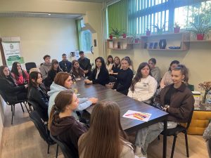 Навчальний екскурс провела голова правління Центру психосоціальної підтримки «Зелений ґудзик» – Світлана ГУМІНСЬКА, яка свій виступ розпочала зі слів: «Ми віримо, що здорова нація починається з турботи про себе, своїх близьких та громаду. Ми обʼєднуємо фахівців, які працюють з психічним здоровʼям, адаптацією та реінтеграцією, аби кожен хто пережив складні події, міг знайти свій шлях до рівноваги та відновлення. Тут можна говорити про емоції, отримувати підтримку, будувати гармонійне майбутнє. Психічне здоровʼя – це потреба. Ми тут, щоб допомогти».