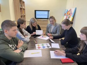 10 жовтня 2025 року у Центрі психосоціальної підтримки «Зелений ґудзик» відбулося бінарне заняття з освітнього компоненту «Психологічні основи соціальної роботи» на тему: «Мистецтво комунікації. Як говорити та слухати?». Заняття провели Жанна МЕЛЬНИК (кандидат психологічних наук, доцент кафедри соціальної роботи) та Світлана ГУМІНСЬКА (голова правління Центру психосоціальної підтримки «Зелений ґудзик»).