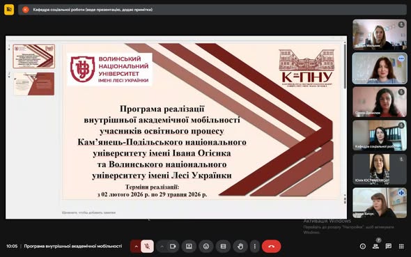 23 березня 2026 року відбулася робоча організаційна зустріч щодо початку реалізації програми внутрішньої академічної мобільності учасників освітнього процесу Кам’янець-Подільського національного університету імені Івана Огієнка та Волинського національного університету імені Лесі Українки.