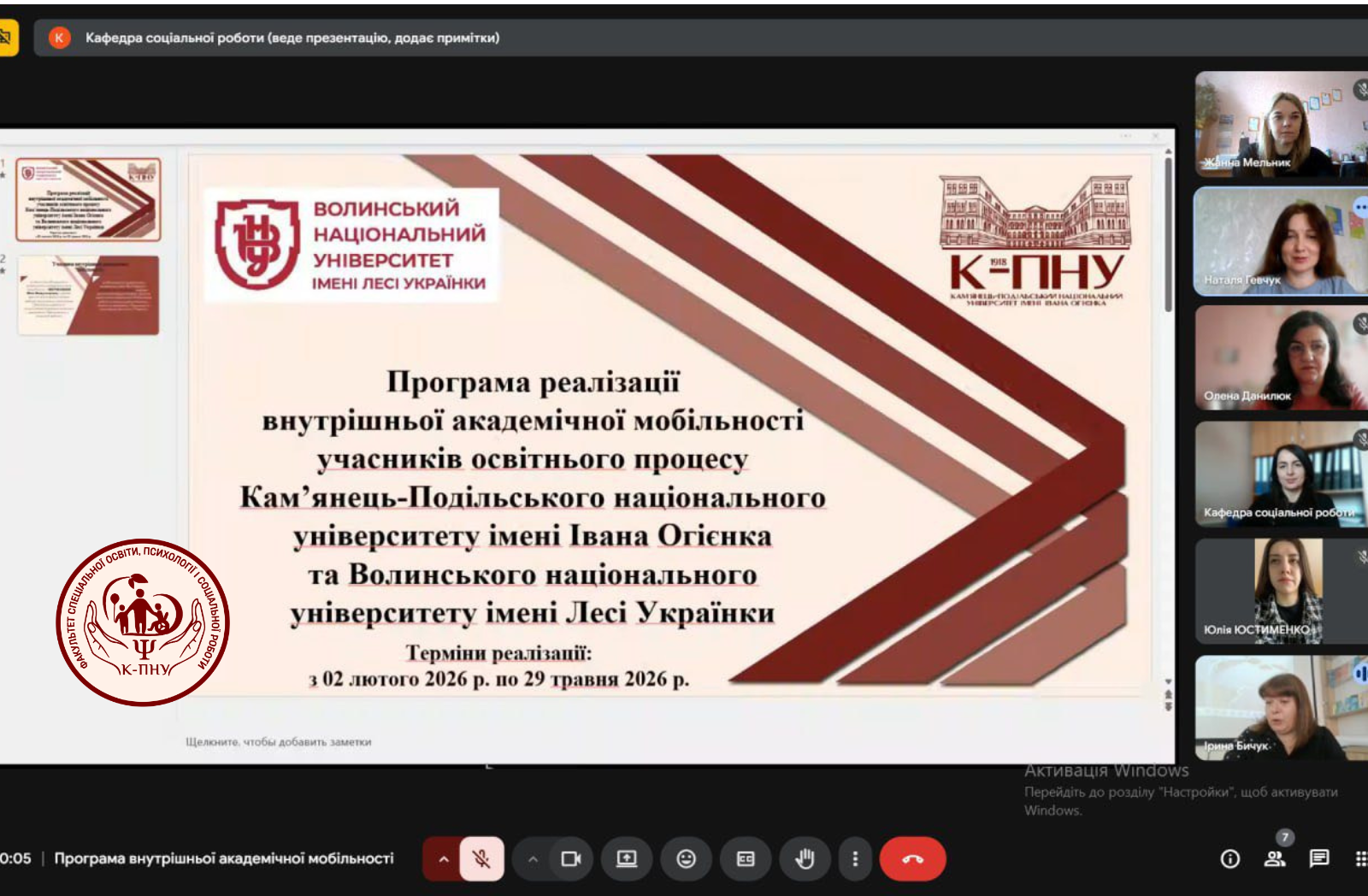 В ході робочої зустрічі сторони детально обговорили умови реалізації програми внутрішньої академічної мобільності, зокрема порядок участі здобувачів вищої освіти, особливості вивчення освітніх компонентів, організацію освітнього процесу, а також забезпечення ефективної взаємодії між Кам’янець-Подільським національним університетом імені Івана Огієнка та Волинським національним університетом імені Лесі Українки.