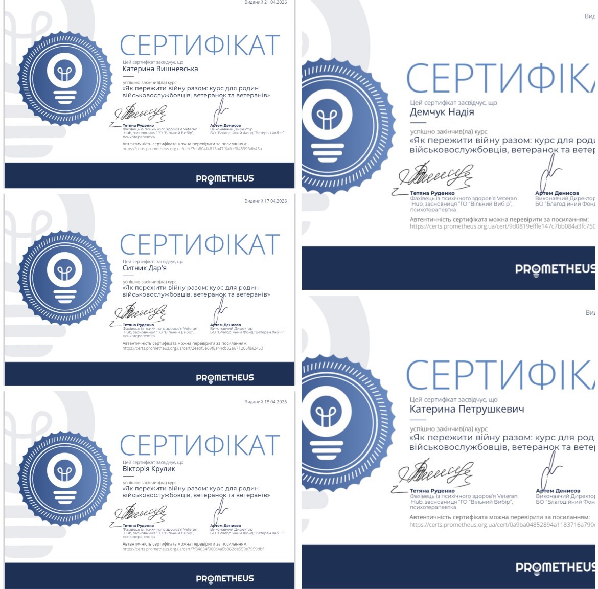 У межах вивчення вибіркового освітнього компонента «Психосоціальна підтримка військовослужбовців та членів їх сімей» здобувачі першого (бакалаврського) рівня вищої освіти спеціальностей 231 Соціальна робота та 232 Соціальне забезпечення пройшли навчання в межах онлайн-курсу «Як пережити війну разом: курс для родин військовослужбовців, ветеранок та ветеранів», що був представлений на платформі Prometheus.